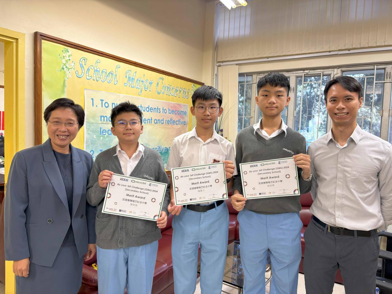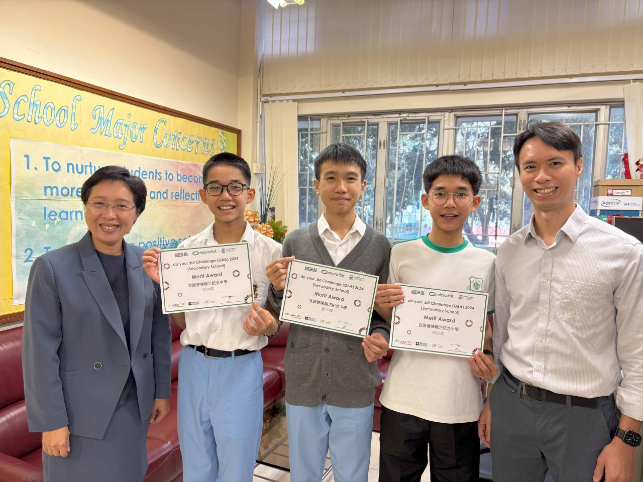 "本校兩隊學生運用STEAM課堂的編程知識及工程技巧,設計出能解決日常生活問題的智能產品。其中一組學生使用傳感器、KOI鏡頭及人工智能技術,製作出能為垃圾分類智能垃圾桶。他們的作品在由BBC micro:bit教育基金會、英國文化協會、聯合國兒童基金會共同舉辦的創意編程發明比賽「Do your:bit 挑戰賽」(中學組) 均奪得優異獎。獲獎學生更獲邀於2025年1月前往英國倫敦參與「英國教育科技博覽會」(Bett Show 2025),向國際教育界及創科企業分享本校STEAM教育成果。