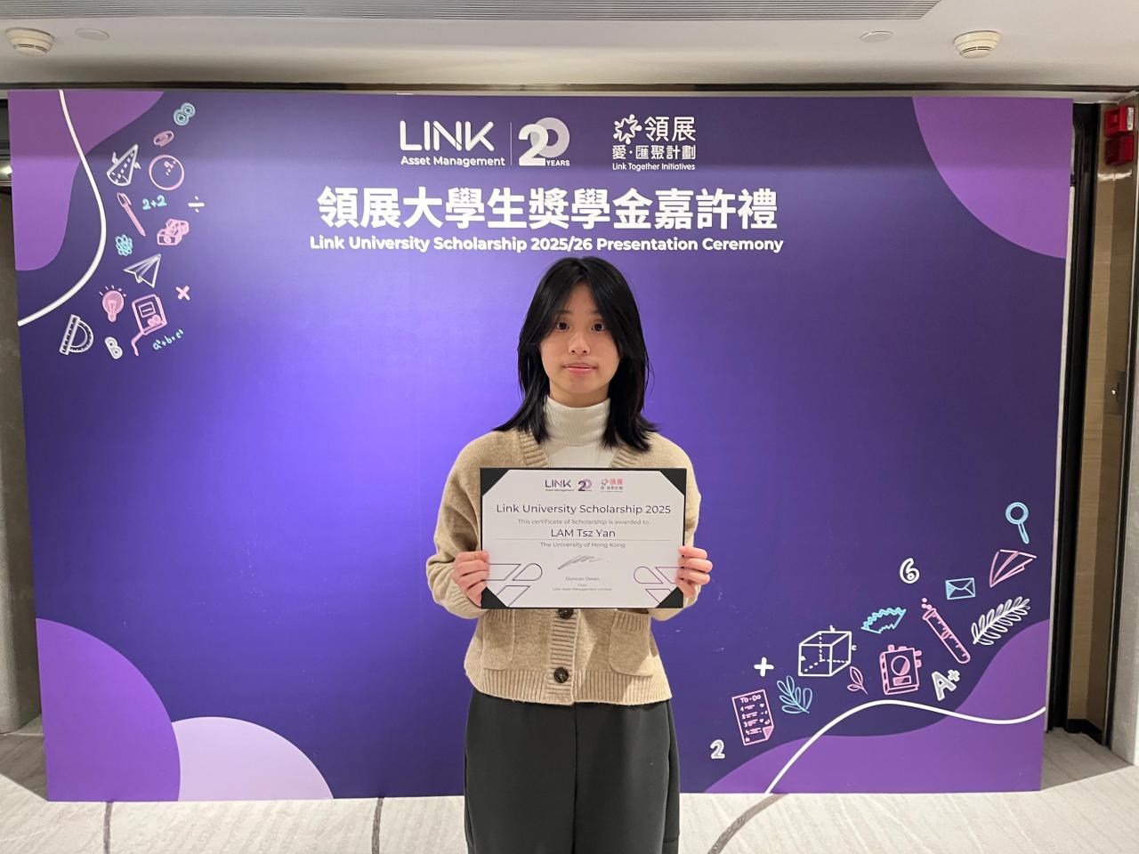 Our recent graduate, Crystal Lam, achieved outstanding results in HKDSE. During her time at school, she actively participated in various activities and service. Upon the school’s recommendation, she was nominated to compete for the Link University Scholarship (for Year 1 University Studies). Ultimately Crystal passed the interview and was awarded the scholarship. Congratulations!