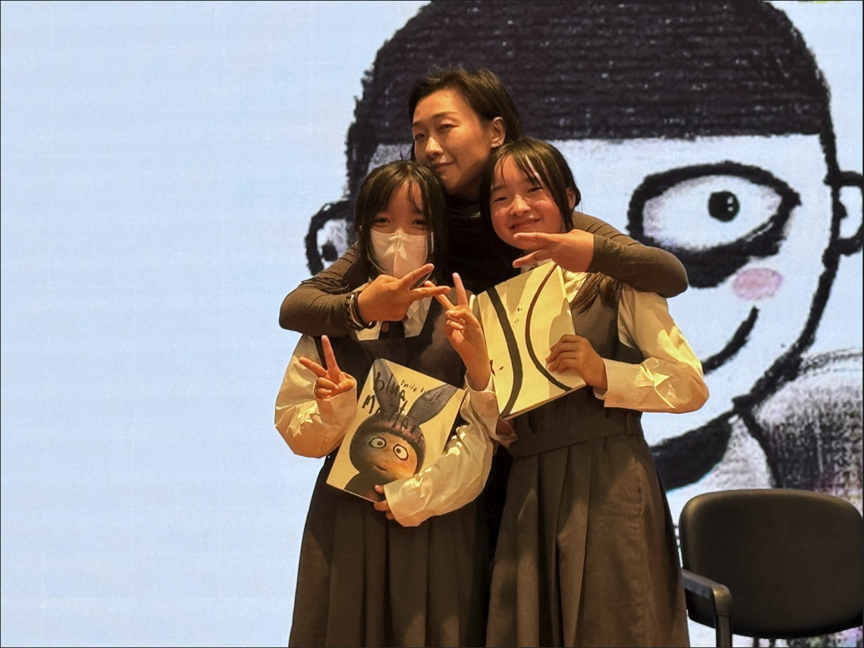 She shared her journey of overcoming early struggles and opposition through unwavering persistence. During the assembly, B. Wing engaged in heartfelt dialogues with junior students and answered insightful questions from senior students about staying true to her passion. The session concluded with a generous giveaway of over 20 signed art books. This was more than an art talk; it was a profound lesson in life education.