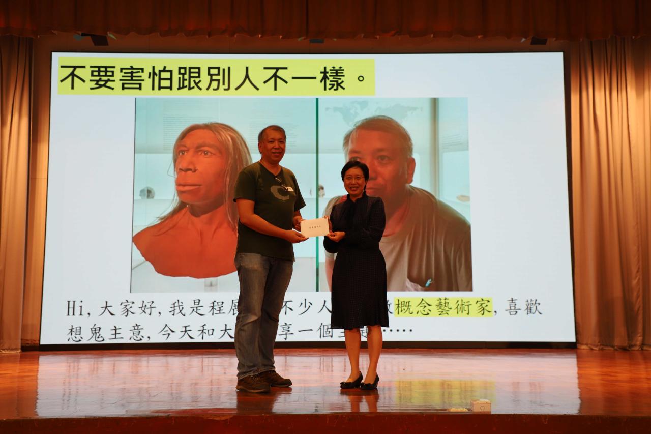 2024-10-15 本校很榮幸邀請著名概念藝術家程展緯先生蒞臨與師生分享,透過他風趣互動的分享,讓師生們有很多反思,帶我們進入一些被人忽視的人、事、物中,以不同角度去思考感受,令師生對藝術和藝術家身份的既定觀念都有一個不一樣的想法。 Activities Aesthetic Education
