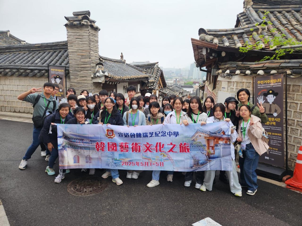 2025-05-01 本校三十名中三至中五級同學參加由本校主辦的「韓國藝術文化之旅」。同學在旅程中參訪不同的藝術館和文化景點,更有幸到訪當地中學,與當地師生共同上課、交流,了解當地藝術文化。旅程後,同學除對韓國藝術有更多了解外,亦親身體驗當地文化,擴闊眼界。 Activities Aesthetic Education