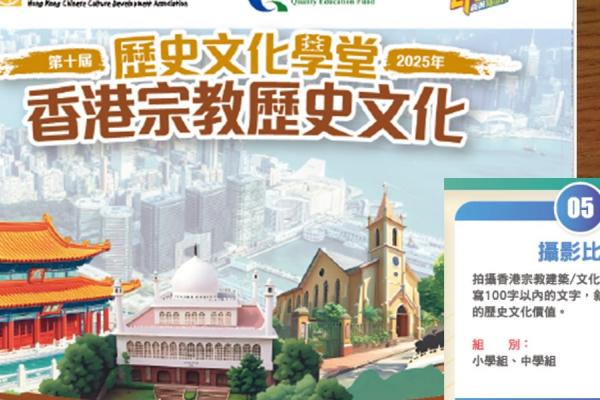 2026-02-03 本校中三級學生韋榮熙及王鴻濤參加香港中華文化發展聯合會「歷史文化學堂(第十屆)──香港宗教歷史文化」攝影比賽,獲嘉許獎,作品獲選入《歷史文化學堂(第十屆)──香港宗教歷史文化成品集》電子書,以推廣中華歷史文化。歡迎線上閱讀。 Activities Moral, Civic and National Education