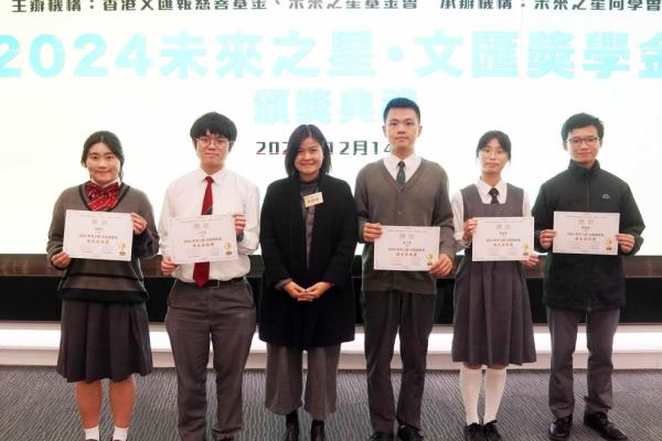 2024-12-14 本校中六同學林子恩,在「2024未來之星。文匯獎學金」評選中,榮獲優異表現獎。 圖1右二; 圖2後排左二. Prizes & Awards Career and Life Planning