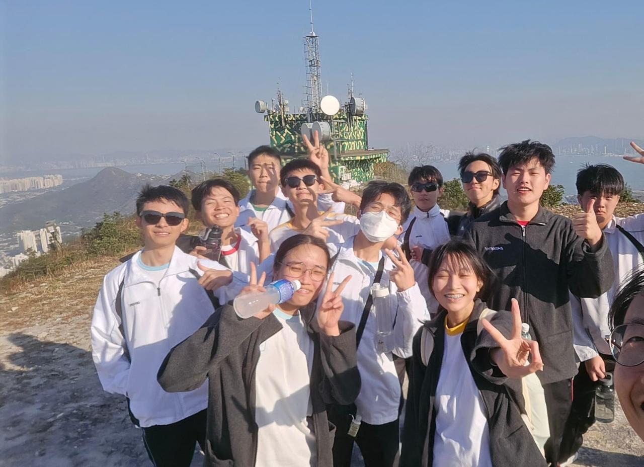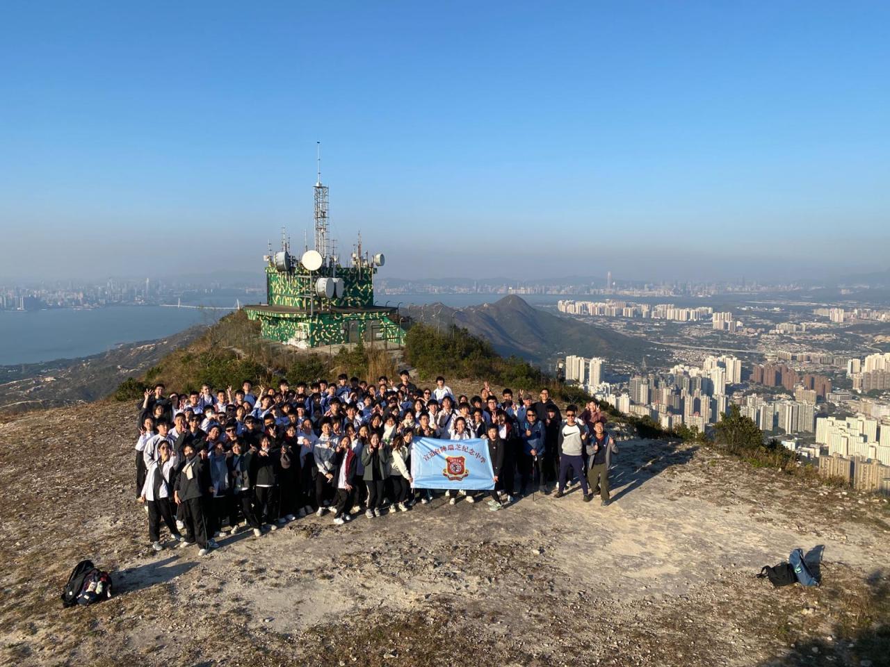 The ascent was a significant challenge, particularly for those with limited hiking experience. Fortunately, despite the drop in temperature, the day was blessed with clear skies and bright sunshine. Through mutual encouragement and support, the entire cohort successfully reached the peak within an hour and a half. From the summit, students enjoyed a panoramic view extending from Central in the south to Shenzhen in the north, with their own Tuen Mun community spread out beneath them. For many, it was their first time viewing their residential estates from this vantage point, and their first time standing atop the mountain they looked up at daily throughout their six years of secondary school.