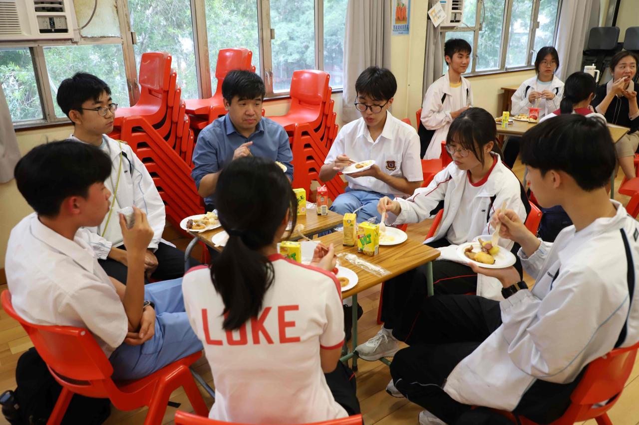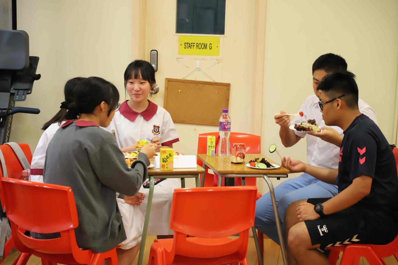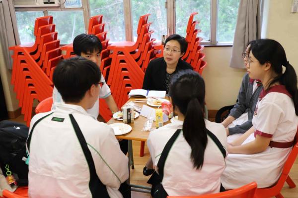 "一年一度的學生領袖茶聚於5月8日舉行,校長和行政組老師們與三十多位學生領袖輕鬆對談,同學向師長分享自己擔任領袖的感受,以及升學的路向,也趁機就功課、測考、活動安排、校園環境等提出意見,大家商討可行性,師生都獲益良多。