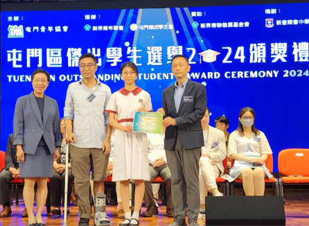 Our F.5 student Alice Lam Wan Chi got the Merit Award in the Tuen Mun Outstanding Student Election 2024.