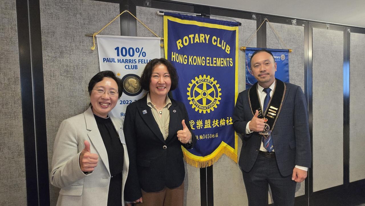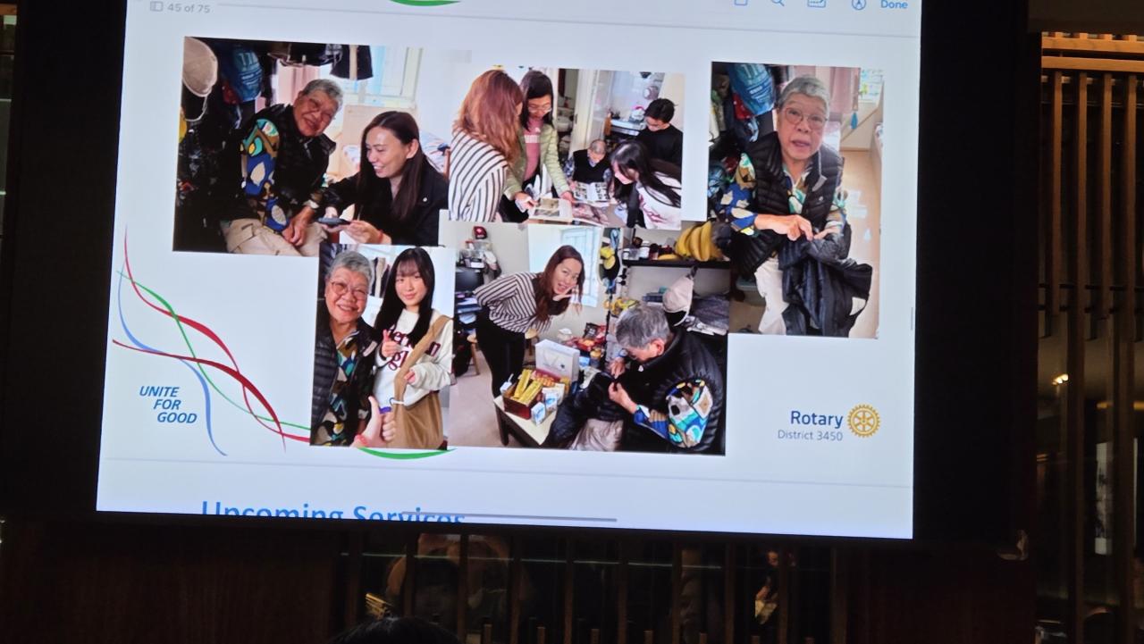 扶輪社3450區總監鄭卓群女士在例會上擔任主題講員,介紹了國際扶輪社的主要理念,以及近年與聯合國的合作,例如小兒痲痺症方面的工作。