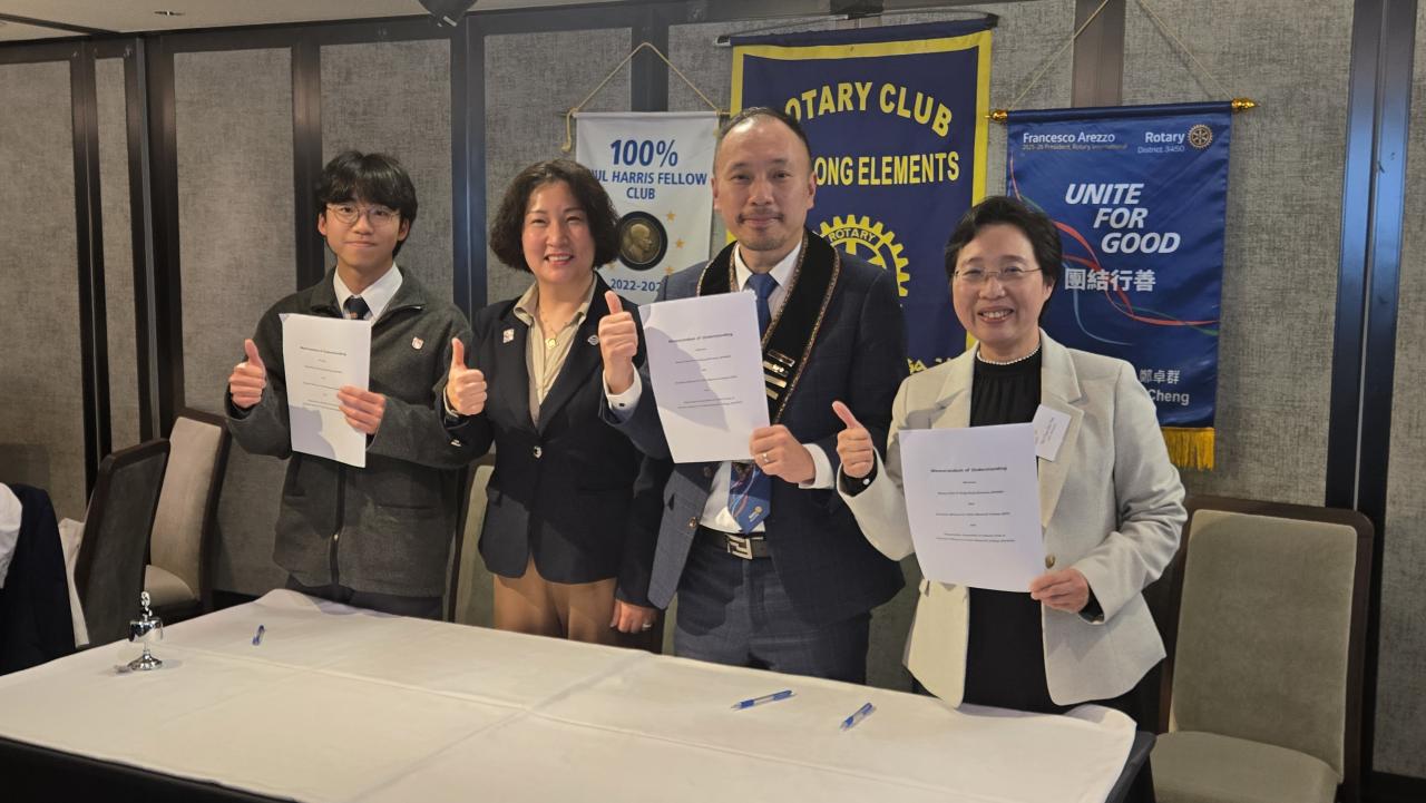 該社邀請了本校校長、副校長、四位同學及一位校友,出席一月廿九日晚假香港銀行家會所舉行的例會,扶輪社3450區總監鄭卓群女士亦出席見證簽署合作備忘錄約儀式。