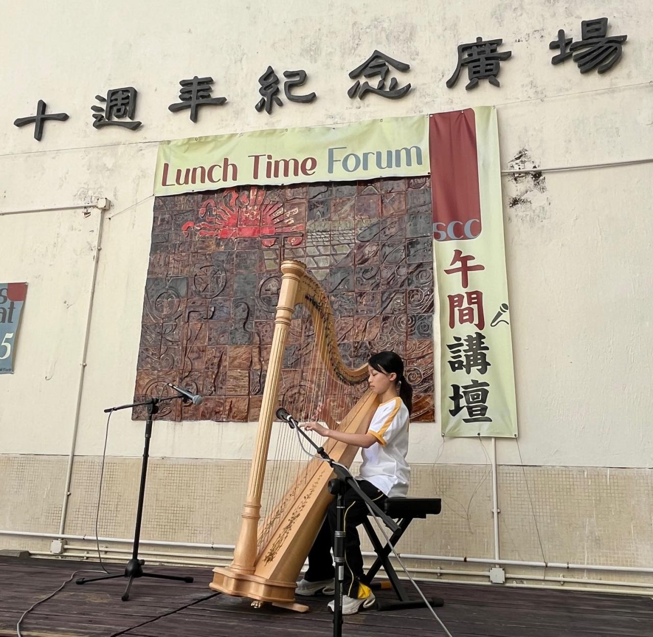 Our "SCC Stage" serves as a vibrant stage for students to display their versatility. In early February, we were treated to a harp performance of "Boundless" by F.1 student Yeung Tsz Chiu, followed by an insightful interview.