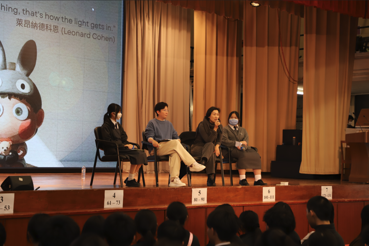 為了讓學生開拓藝術視野,我校每年均邀請不同藝術家到校分享。今年,我們很榮幸能邀請著名藝術家 B. Wing蒞臨,分享她的藝術創作之路。B. Wing 筆下的「A仔」(百老匯電影院開場前的禮儀片主角) 最為人熟悉。儘管她在創作初期困難重重,甚至面對親友的反對與勸退,但她憑著一份堅持成就了今天的她。周會期間,B. Wing 不僅無私分享創作心得,更與初中同學深情對談,聆聽他們的成長點滴;高中同學則踴躍提問,深入探尋她如何在逆境中保持初心。此外,B. Wing 更慷慨贈予20多本親筆簽名畫冊,獲贈同學皆愛不釋手。這場周會不僅是一次藝術欣賞,更是一場觸動心靈的生命教育。