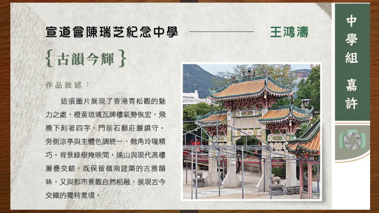 2026-02-03 本校中三級學生韋榮熙及王鴻濤參加香港中華文化發展聯合會「歷史文化學堂(第十屆)──香港宗教歷史文化」攝影比賽,獲嘉許獎,作品獲選入《歷史文化學堂(第十屆)──香港宗教歷史文化成品集》電子書,以推廣中華歷史文化。歡迎線上閱讀。 Activities Moral, Civic and National Education