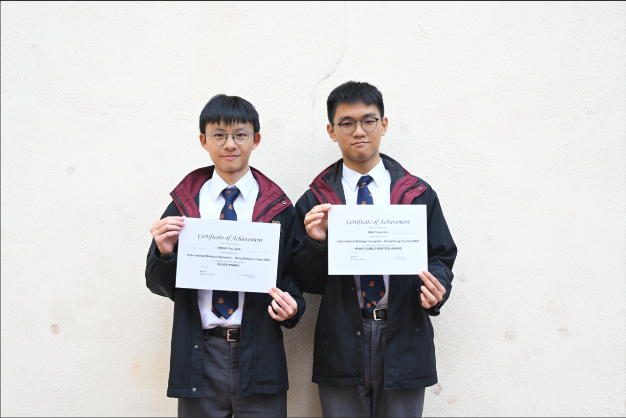 The International Biology Olympiad (IBO) – Hong Kong Contest is jointly organised by the Education Bureau and the Hong Kong Academy for Gifted Education. The contest aims to promote local biology education and provide challenging enrichment learning opportunities for students with outstanding potential in biology. Two of our Form Six students obtained remarkable results as follows: