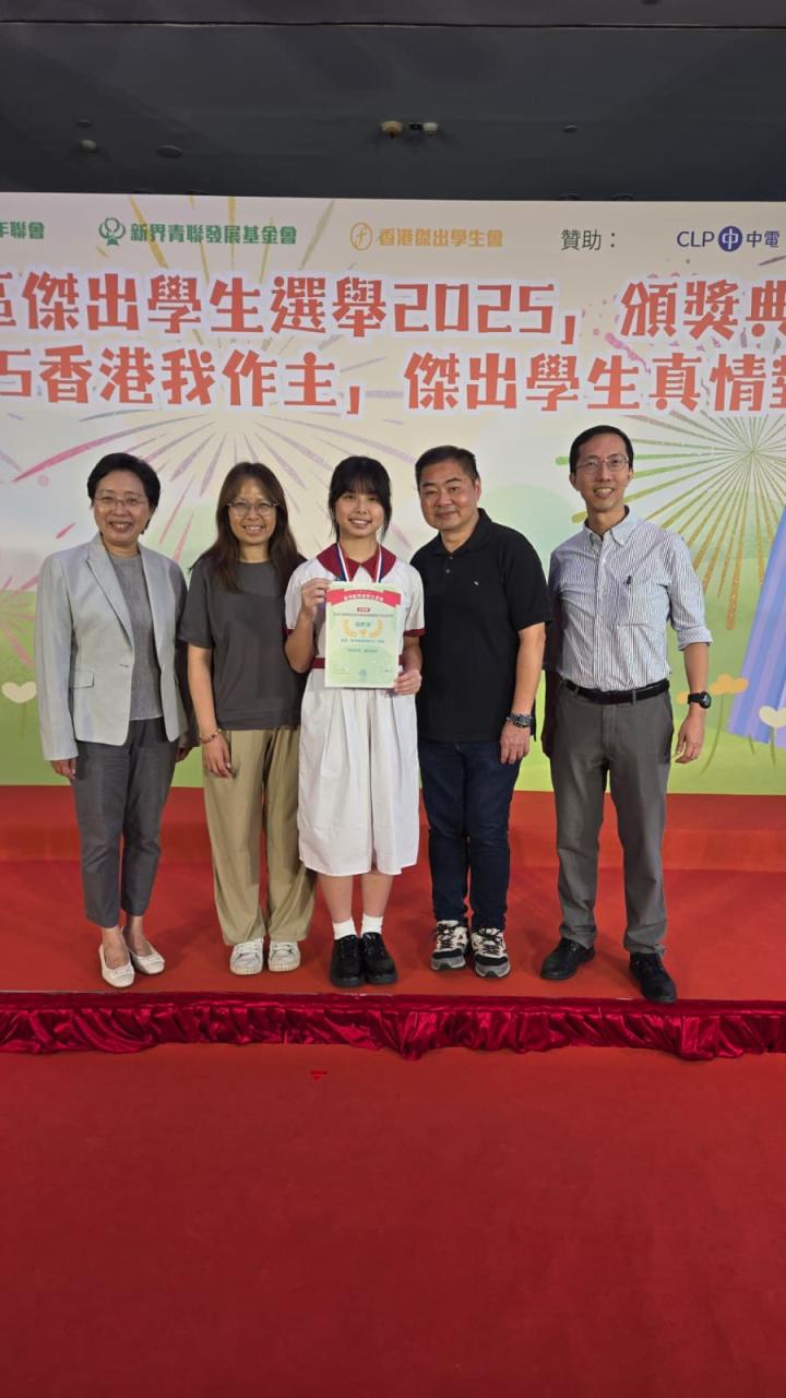 本校學生榮獲新界區優秀學生嘉許