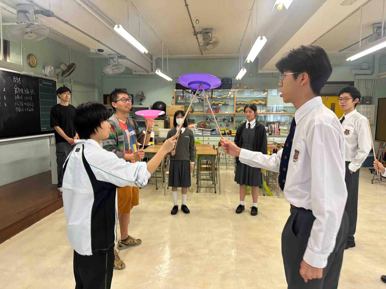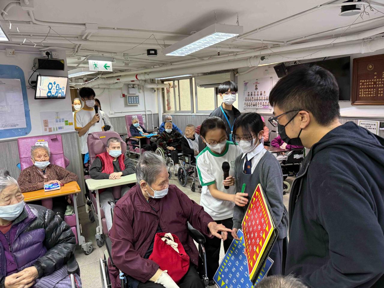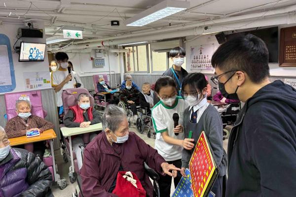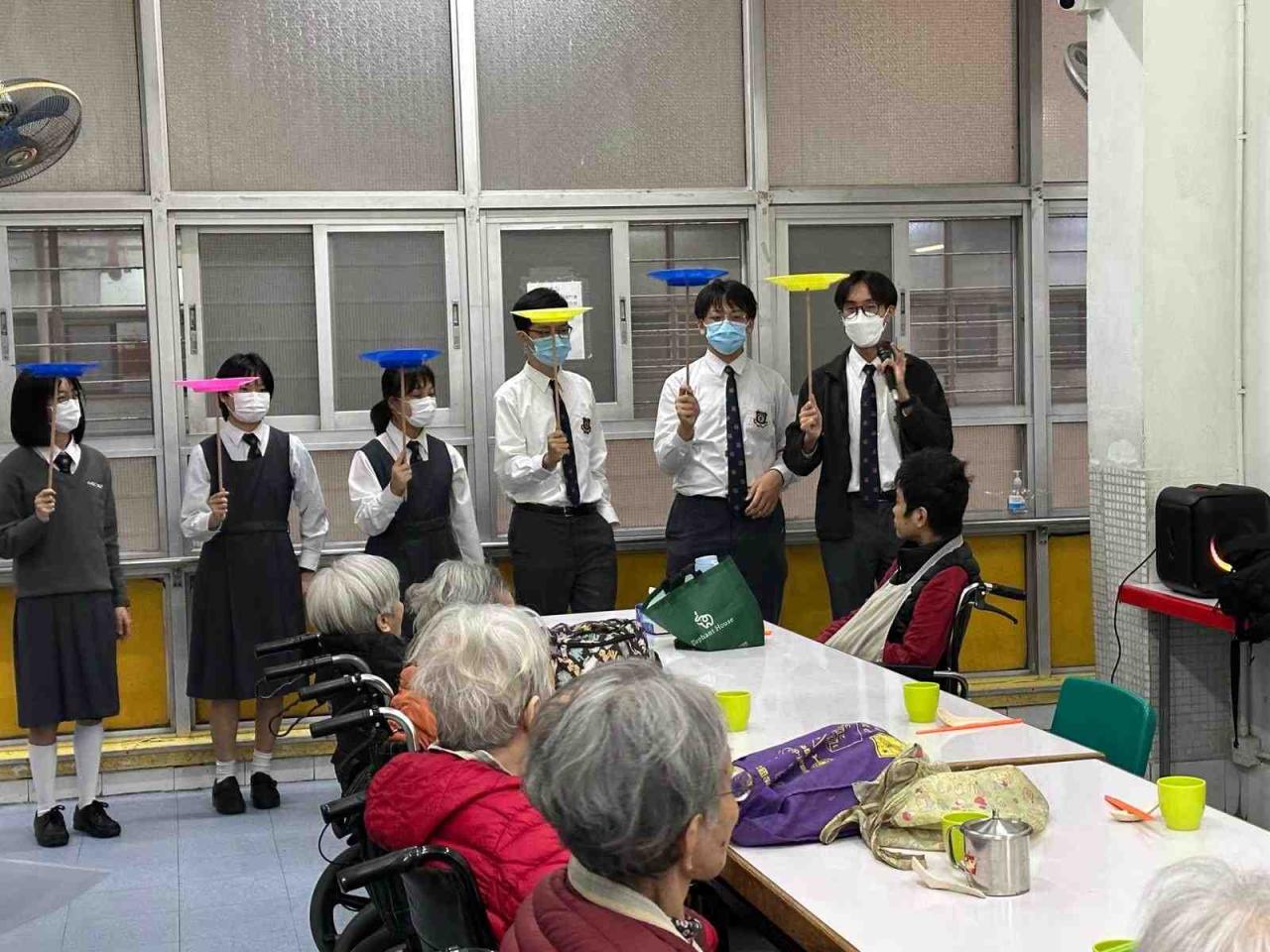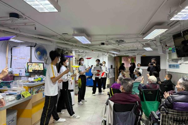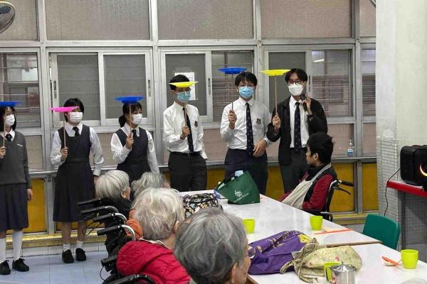 30 F.1 to F.5 Students participated in the Social Service Learning Scheme organized by the Hong Kong Youth Association from February to March. They acquired new skills in the program. In addition to acrobatics such as spinning and throwing scarves, they also learned some magic performances and benefited a lot. In March, students went to two elderly's homes to perform for the elderly, which added a little colour to their lives."